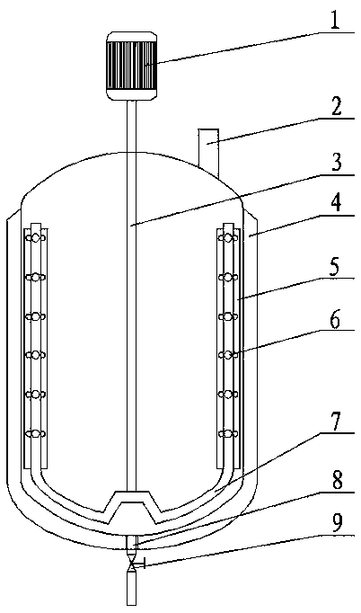 | 详情介绍: 本实用新型公开了一种离子液高压反应釜搅拌装置,包括安装在反应釜釜体上的电机,与电机连接伸入到釜体内部的搅拌轴,设置在搅拌轴上的搅拌桨,设置在釜体内壁上的夹套,设置在釜体上的进料口和出料口,以及安装在出料口的阀门,还包括四氟板,所述四氟板通过螺栓固定在搅拌桨上,所述搅拌桨为锚式搅拌桨,搅拌桨底部连接部位设为凹形形状,所述阀门为上展式放料阀。本实用新型的搅拌桨上固定四氟板,可以避免搅拌桨对反应釜内壁的接触磨损,当四氟板与内壁接触磨损后,还可沿着条形槽移动来调整四氟板与反应釜内壁的距离,从而可以继续搅拌;反应釜的出料口采用上展式放料阀,当出料口有结晶体堵塞时,可以用阀门向上旋转前进,顶破结晶体。 |