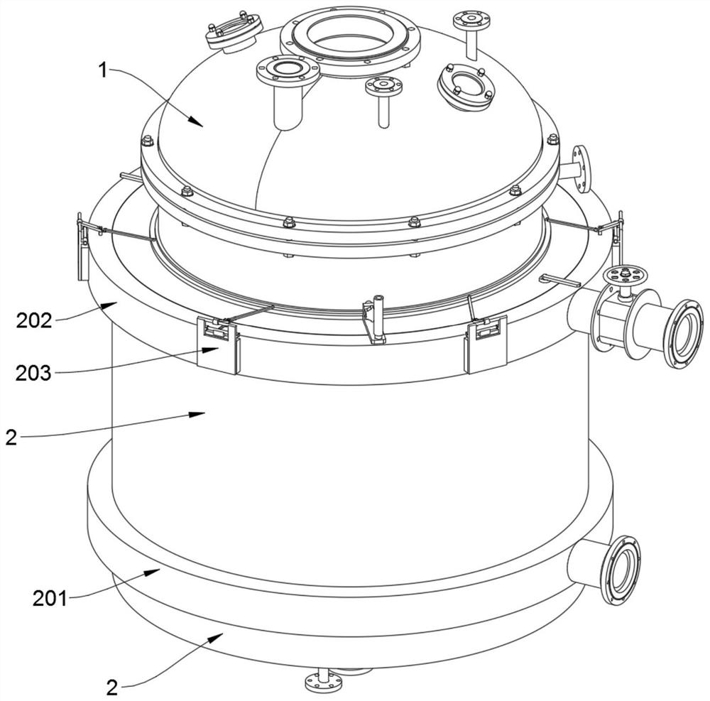 | 详情介绍: 本发明公开了一种基于生产环保增塑剂的冷却装置,涉及反应釜冷却装置技术领域,解决了现有的冷却装置,不能够合理的利用冷却装置的散发热量去调控厂房的温升,进而不能够使厂房较好的适用冬天和夏天不同的工作温度问题。一种基于生产环保增塑剂的冷却装置,包括反应釜,所述反应釜包括导热环套和撑托环,所述反应釜的圆周外壁上焊接套装有一处导热环套,此导热环套与反应釜的圆周外壁之间盛装有导热油,且导热环套的圆周外壁上焊接设置有一圈金属散热片,且反应釜底部位置的半球形外壁上焊接套装有一处撑托环。本发明通过两处拉杆上下提拉滑环以及刷环可对一圈金属散热片实施刷擦清洁,使在不打开通风环罩的情况就可对金属散热片实施清洁。 |