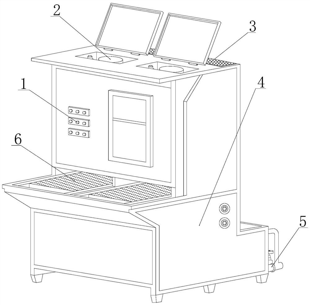 | 详情介绍: 本发明公开了一种环保设备除尘机,其结构包括控制面板、通风槽、排风口、设备箱、排污阀、进料口,控制面板与设备箱前端嵌套连接,通风槽与排风口前端间隙配合,设备箱后端与排污阀法兰连接,进料口与设备箱前端内部嵌固连接,控制面板固定在进料口上端与其活动配合,设备箱包括风机、过滤层、传动辊、出料口、喷洒头、收纳层,风机固定在过滤层上端位置间隙配合,过滤层与传动辊上表面间隙配合,出料口固定在喷洒头左侧进行活动配合,喷洒头与收纳层下端活动配合,本发明通过收纳层内部的挡板通过风力大小的改变带动前后摆动,将向上飞起的棉絮团进行收集至纳入孔内部,有效避免了棉絮团乱飞,直接进入过滤层内部空洞影响过滤效果的问题出现。 |