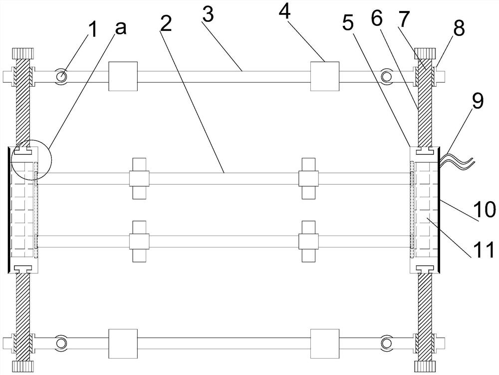 | 详情介绍: 本发明公开了一种计算机硬件监控装置,包括左右对称设置的支撑安装板,所述左右两侧的支撑安装板之间平行设置有两组平动安装柱,支撑安装板的前后两侧对称设置有限位伸缩螺柱,同侧的限位伸缩螺柱互相配合水平设置有移动安装柱,移动安装柱配合限位伸缩螺柱均镶嵌设置有伸缩安装螺筒,移动安装柱的两端配合限位伸缩螺柱对称设置有联动转轴,且联动转轴之间的移动安装柱上对称设置有滑动检测结构,且平动安装柱上也对称设置有滑动检测结构,所述滑动检测结构包括通过转轴活动设置的半圆安装框,本发明具有结构设计紧凑,安装拆卸快速,定位监控准确,功能搭配多样,收纳简洁等优点。 |